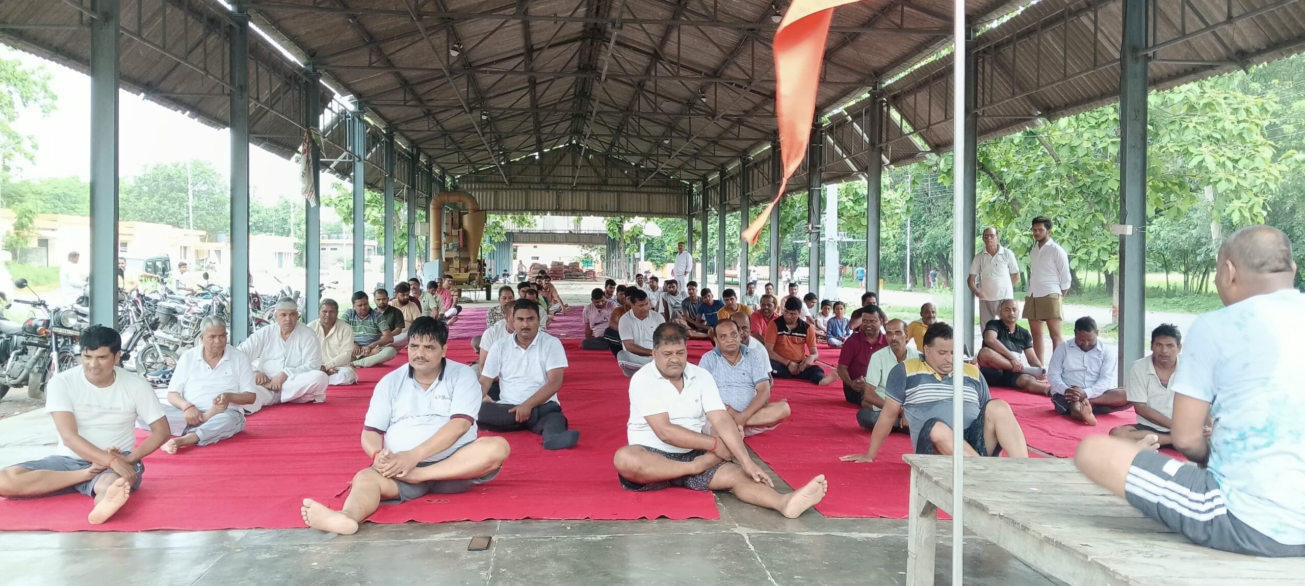 परतावल/महराजगंज। अंतरराष्ट्रीय योग दिवस के अवसर पर शनिवार को परतावल बाजार स्थित मंडी परिसर में बजरंग दल शाखा द्वारा भव्य योग कार्यक्रम का आयोजन किया गया। कार्यक्रम का नेतृत्व काशीनाथ सिंह द्वारा किया गया। इस अवसर पर सैकड़ों लोगों ने सामूहिक रूप से योगाभ्यास कर शारीरिक और मानसिक स्वास्थ्य के प्रति जागरूकता का संदेश दिया।कार्यक्रम में मुख्य अतिथि के रूप में पनियरा विधायक ज्ञानेंद्र सिंह उपस्थित रहे। साथ ही चेयरमैन प्रतिनिधि सतीश मद्धेशिया, ब्लॉक प्रमुख आनन्द शंकर वर्मा, युवा नेता प्रेमशंकर उर्फ निर्भय सिंह, मंडल अध्यक्ष विवेक पटेल, सीएचसी अधीक्षक डॉ. अनिल जायसवाल, एडवोकेट संतोष मिश्रा, व्यापार मंडल अध्यक्ष बलराम गुप्ता, महामंत्री नागेश कशौधन, फार्मासिस्ट शशिविंद मिश्र, शाखा नगर प्रचारक आदर्श पांडेय, शिक्षक रामप्रवेश उपाध्याय, जयप्रकाश मद्धेशिया, डॉ. अशोक कुमार पांडेय, अजय कुमार गौतम, मनोहर मद्धेशिया, महाजन कश्यप, गंगाधर जायसवाल, द्वारिका वर्मा समेत कई गणमान्य लोग कार्यक्रम में उपस्थित रहे।कार्यक्रम की शुरुआत सूर्य नमस्कार, प्राणायाम और विभिन्न योगासनों से हुई। योग प्रशिक्षकों द्वारा सभी उपस्थित लोगों को शारीरिक व्यायाम और ध्यान की विधियाँ सिखाई गईं।काशीनाथ सिंह ने कहा कि योग भारतीय संस्कृति की अमूल्य धरोहर है, जो हमें तन, मन और आत्मा की एकता का अनुभव कराता है। उन्होंने युवाओं से नियमित योग करने का आग्रह किया।इस दौरान वक्ताओं ने योग के महत्व पर प्रकाश डालते हुए कहा कि योग न केवल शारीरिक स्वास्थ्य को बेहतर बनाता है, बल्कि मानसिक तनाव को भी दूर करता है। नियमित योगाभ्यास जीवन को सकारात्मक दिशा में ले जाता है।कार्यक्रम के अंत में शाखा की ओर से सभी प्रतिभागियों को धन्यवाद ज्ञापित किया गया। आयोजन सफलतापूर्वक संपन्न हुआ और उपस्थित लोगों ने नियमित रूप से योग करने का संकल्प लिया।