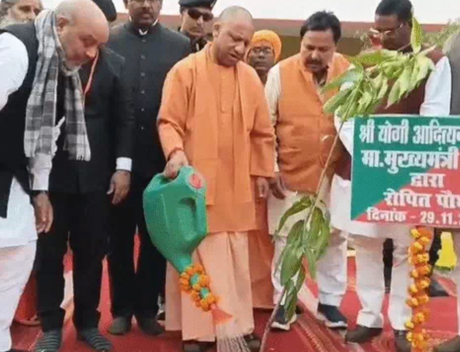तेज हवा में पुआल उड़कर रोटर के पास पहुँचा, सतर्क पायलट ने कराई सुरक्षित लैंडिंग; सीएम योगी ने मंदिर में पूजन और किया वृक्षारोपण